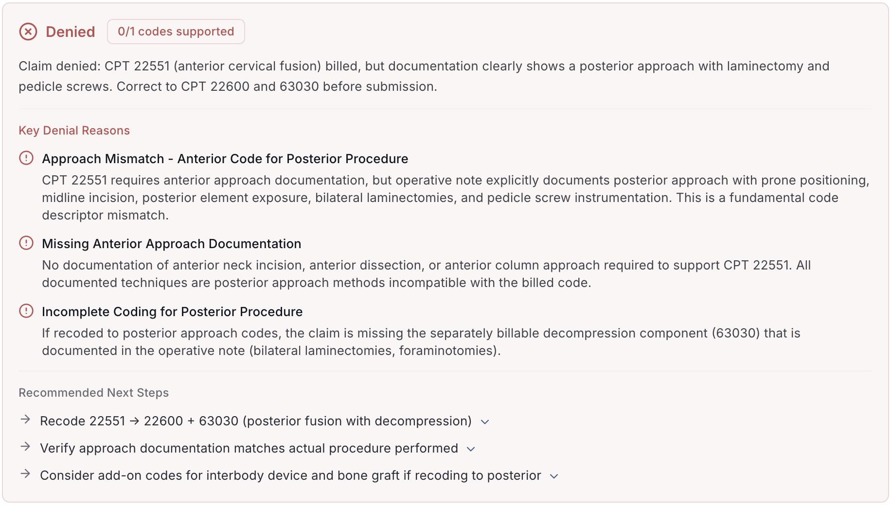 Backbone reviews the full chart before claims drop, catching missed revenue and preventing avoidable denials: so you boost first-pass yield and reduce rework.